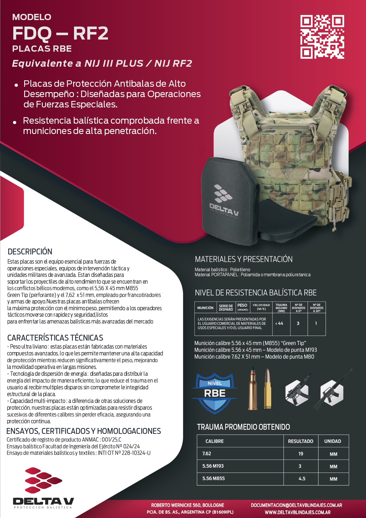 - Ensayo balístico Facultad de Ingeniería del Ejército Nº 024/24